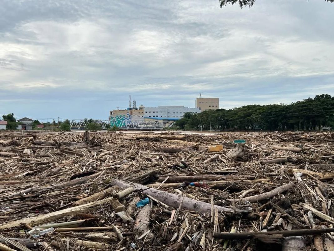 Gelondongan kayu yang terdampar di pesisir pantai seakan menjadi saksi bisu atas keserakahan dan tindakan manusia yang merusak alam.