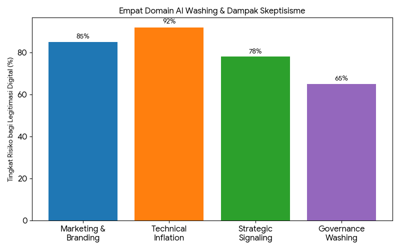 Berdasarkan tinjauan sosio-teknis, kita dapat memetakan AI Washing ke dalam empat domain utama yang sering kali tumpang tindih dalam praktik bisnis saat ini: